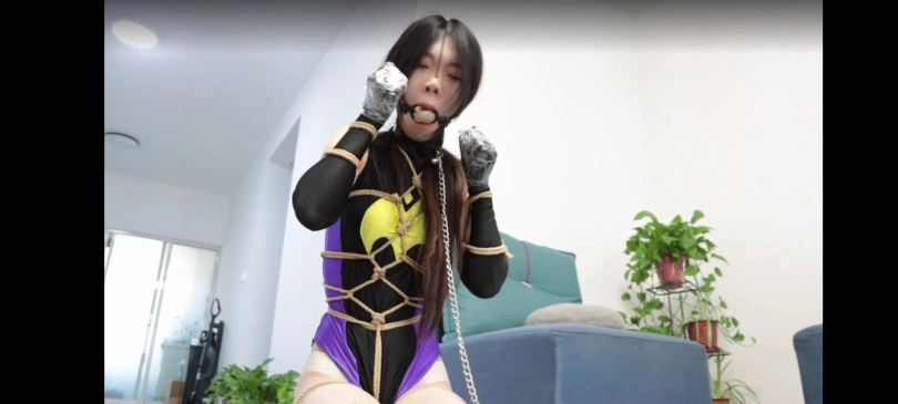 琪梦小姐姐主演,演技很棒身材很好。讲述蝙蝠超人去找文件,结果被博士放了石化粉被定住,还被迫喝下听话水,只能听博士的命令,闻自己的原味靴子,闻完后被绑成犬缚,牵着走成为了博士的奴隶。博士要玩个游戏让她把鼻钩拿下来就放了她可是手被缠成拳头,肯定是取不下来,等待她的是什么惩罚呢。