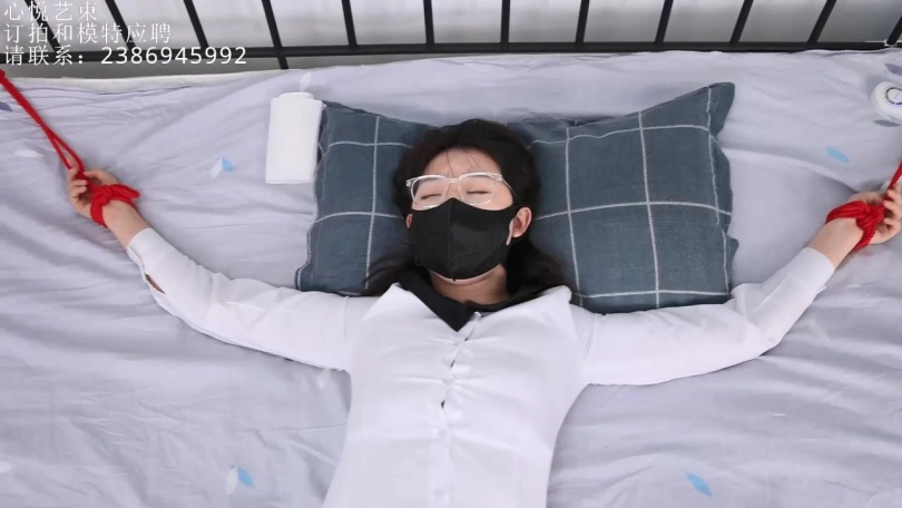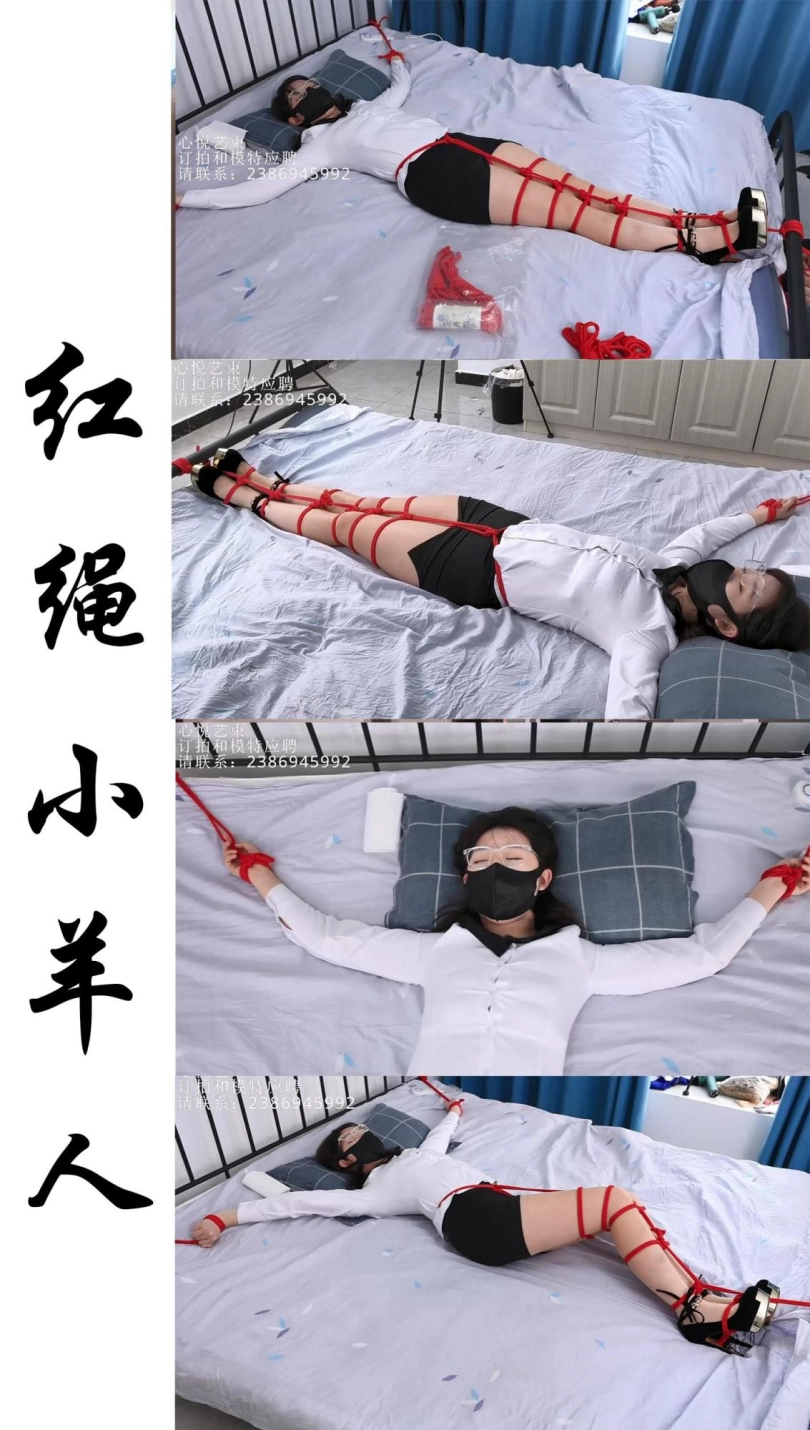 【心悦艺束】红绳小羊人,肉丝美腿OL羊字形绑在床上挣扎,口罩下塞着口球。