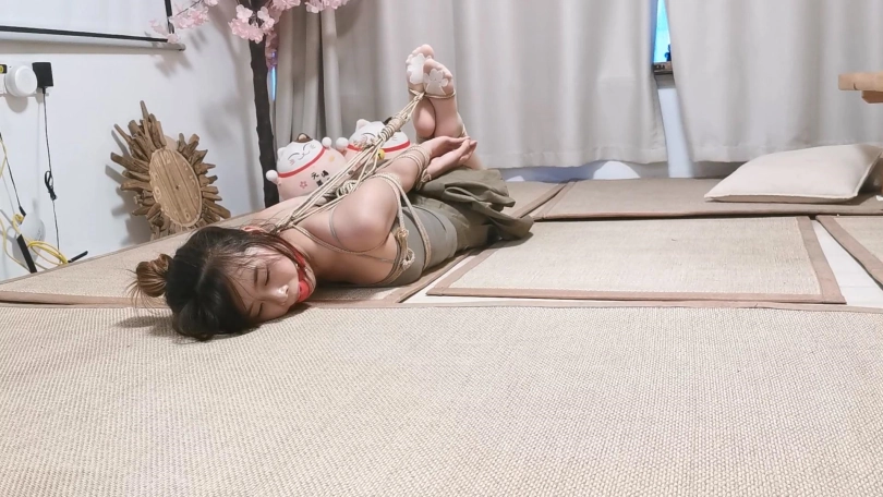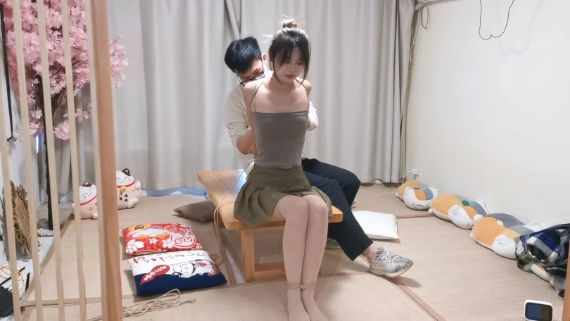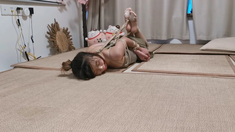 新来的小姑娘小荣,妹子身材还是不错的,柔韧性也是很好,绑个直臂驷马毫无压力,之后就是大家都喜欢的放置时间了,开始是放置在小桌子上的,后来妹子动的太厉害直接翻下去了,一下子给摔老实了。