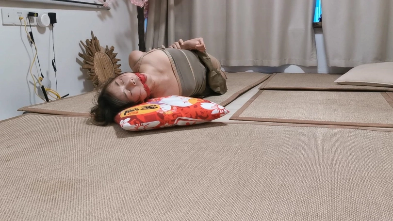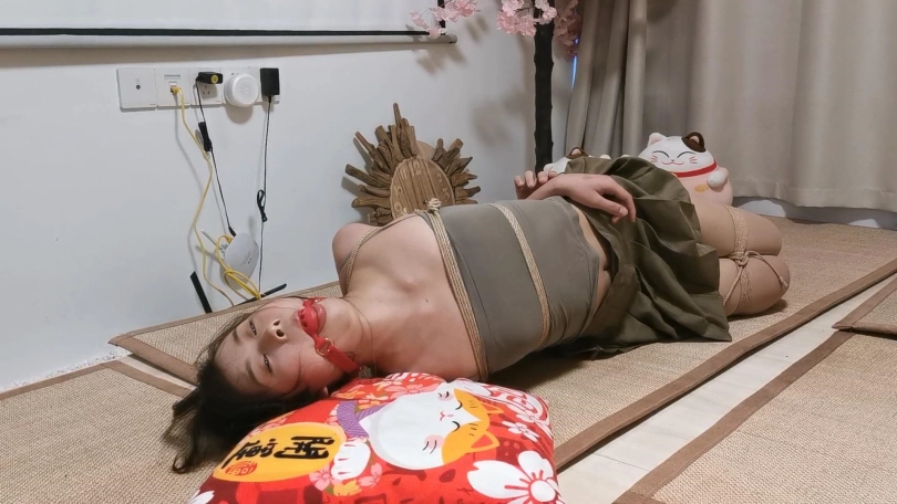 【绳师奥特曼】小荣绳艺初体验 小吊带直臂驷马口球放置在小茶几上