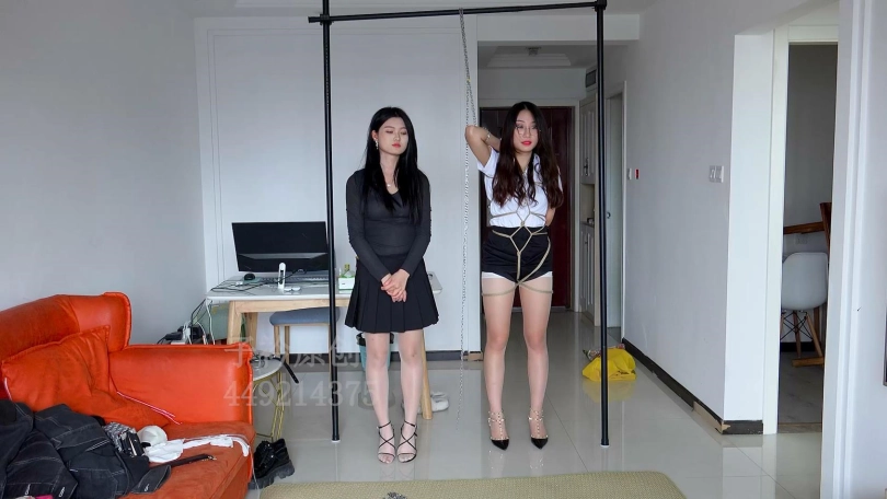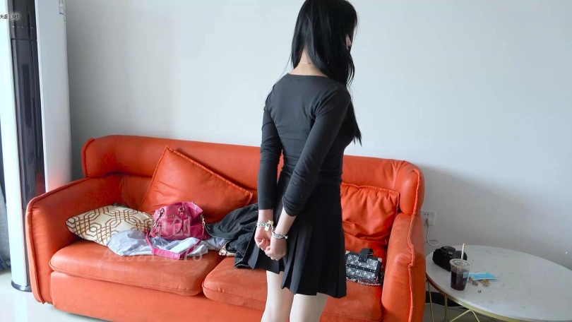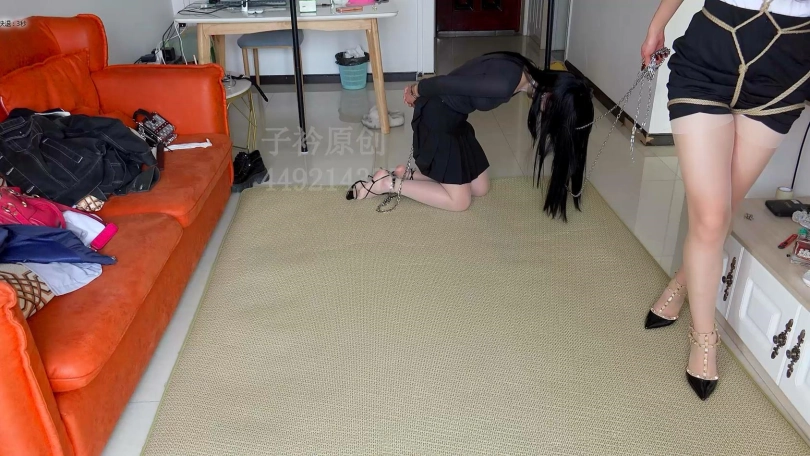 【子衿】妍如菲菲网调实录 (一) 带手铐出小区逛便利店,楼梯道带连体镣铐口枷牵引回房间,戒尺打屁股,跪爬,刷子挠痒,舔足