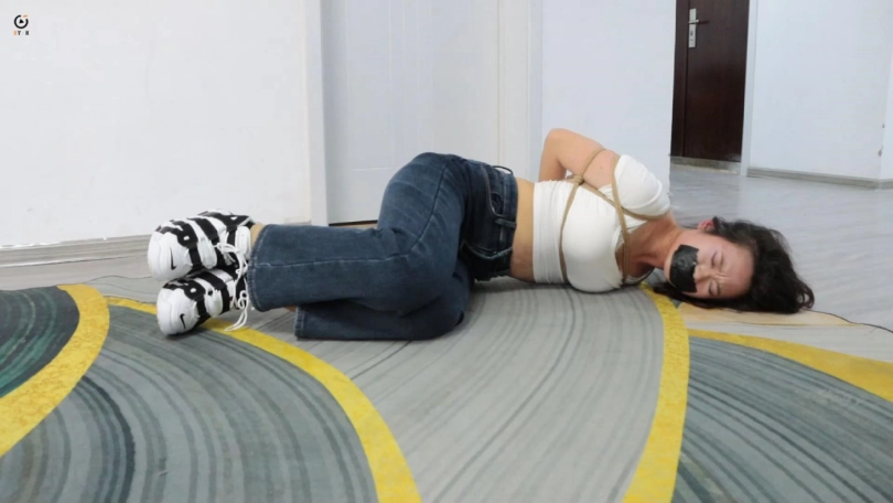 内小挽在周六这天被叫到了公司加班,正在抱怨的时候被人从背后捂住了嘴。原来此人是之前被开除的小张,因为怀恨在心于是潜入公司想拿回属于自己的一部分,他将小挽捆绑后用胶带封住了她的嘴。挣扎片刻后,小张撕开了胶带询问公司账户,小挽不愿意说,然后小张脱掉了小挽的鞋子开始挠她的脚,小挽受不了说出了出来。因为太过于害怕记错,导致账号被锁,气愤的小张以为小碗是故意的,于是拿出事先准备好的袜子堵住了小挽的嘴,再用胶带缠了好几圈,然后继续挠小挽的脚。挠了一会后留下小婉一个人挣扎,小张则扬长而去。