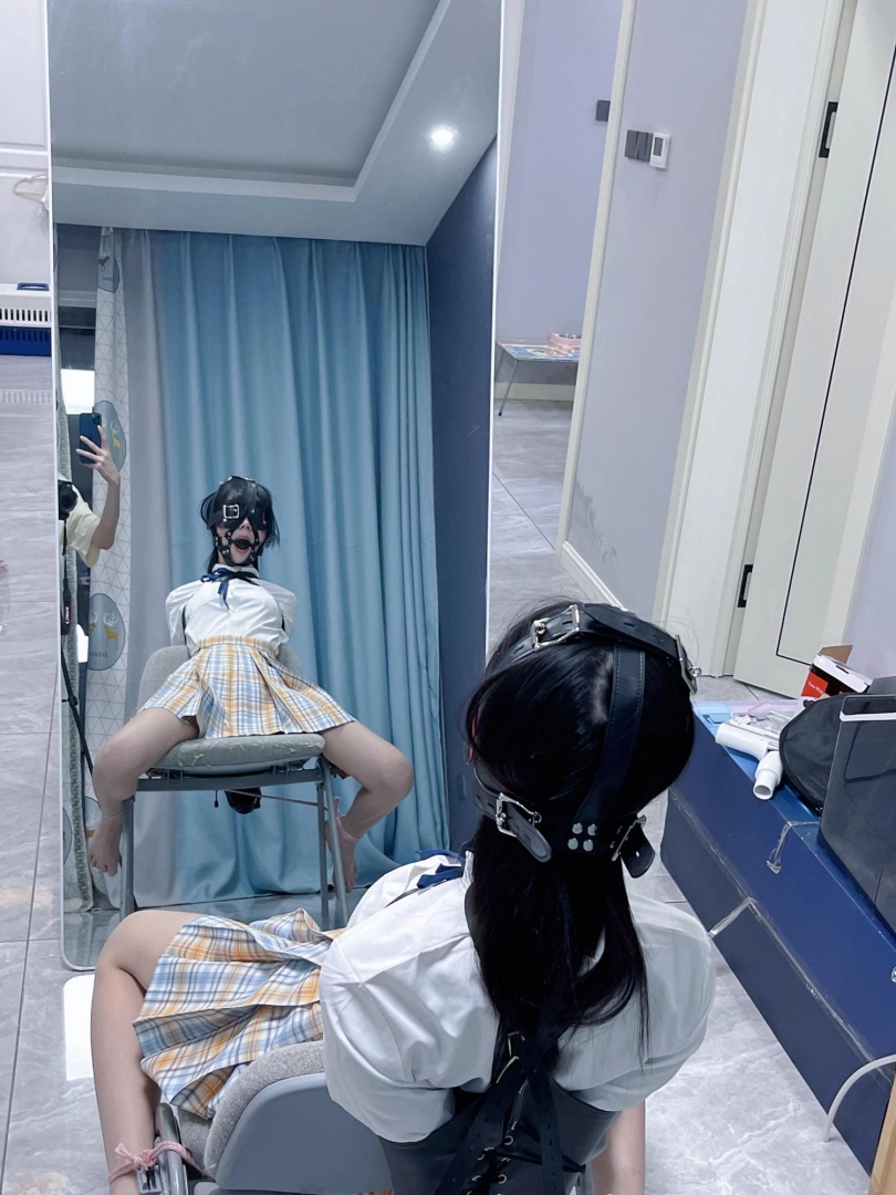 【咕咕精】清纯jk茶茶椅子对镜放置、强制抚摸(鼻钩、马具口球、单手套、肆意抚摸,羞耻拉满~)