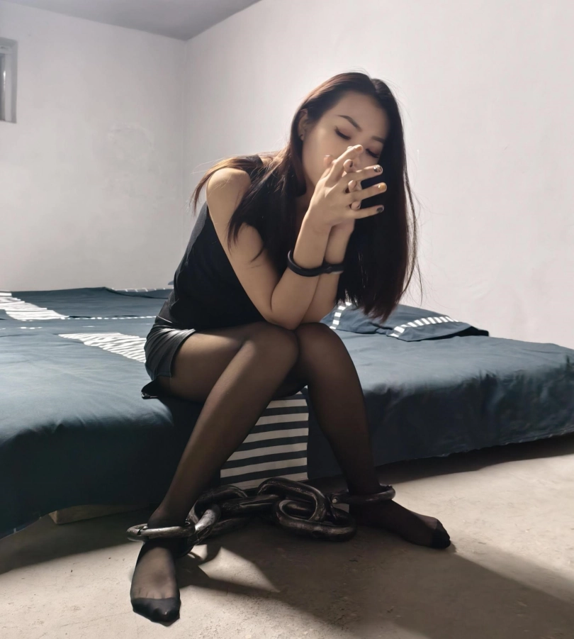 【忘忧社】新模特小可冉冉饰演女J,张澜逃跑被抓后因拒不交代,被吊起来惩罚,还是不说,后又被带到刑讯室反手吊,电椅惩罚,最后终于坚持不住交代了自己的杀人经过,被JC收押。一个月后,法院宣判了该案子