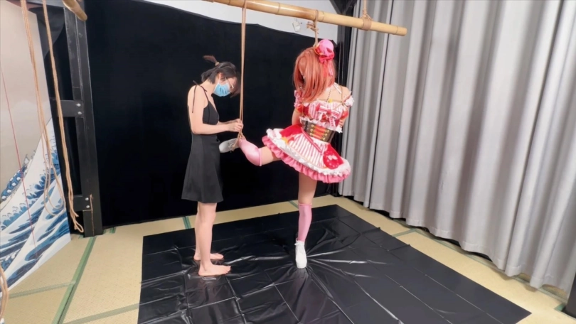 【象人】cos+女调女 小0&嗷嗷-cos上原步梦,女调女,单脚吊缚下的墙高憋尿!
