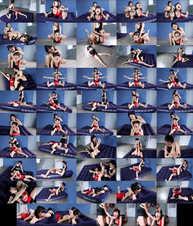 Emily (Red) is Dominated by Nana (White) with various wrestling moves. Emily is knocked out multiple times.