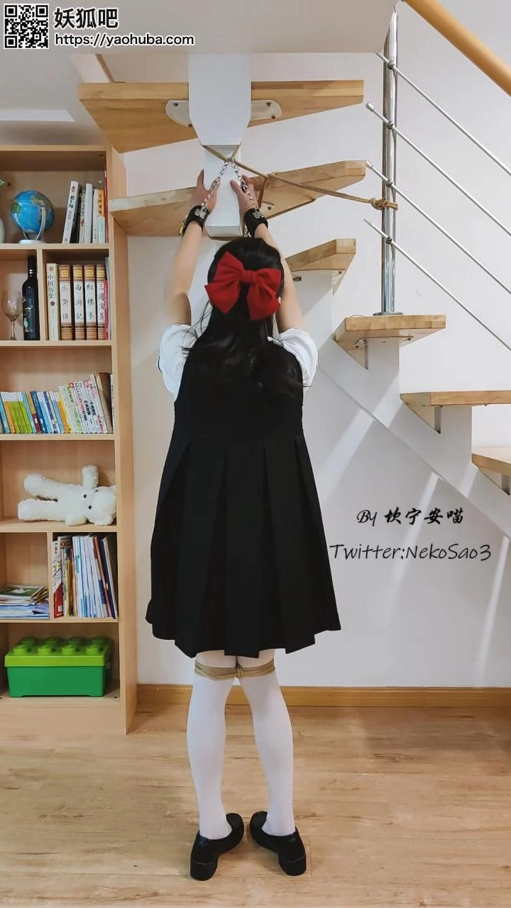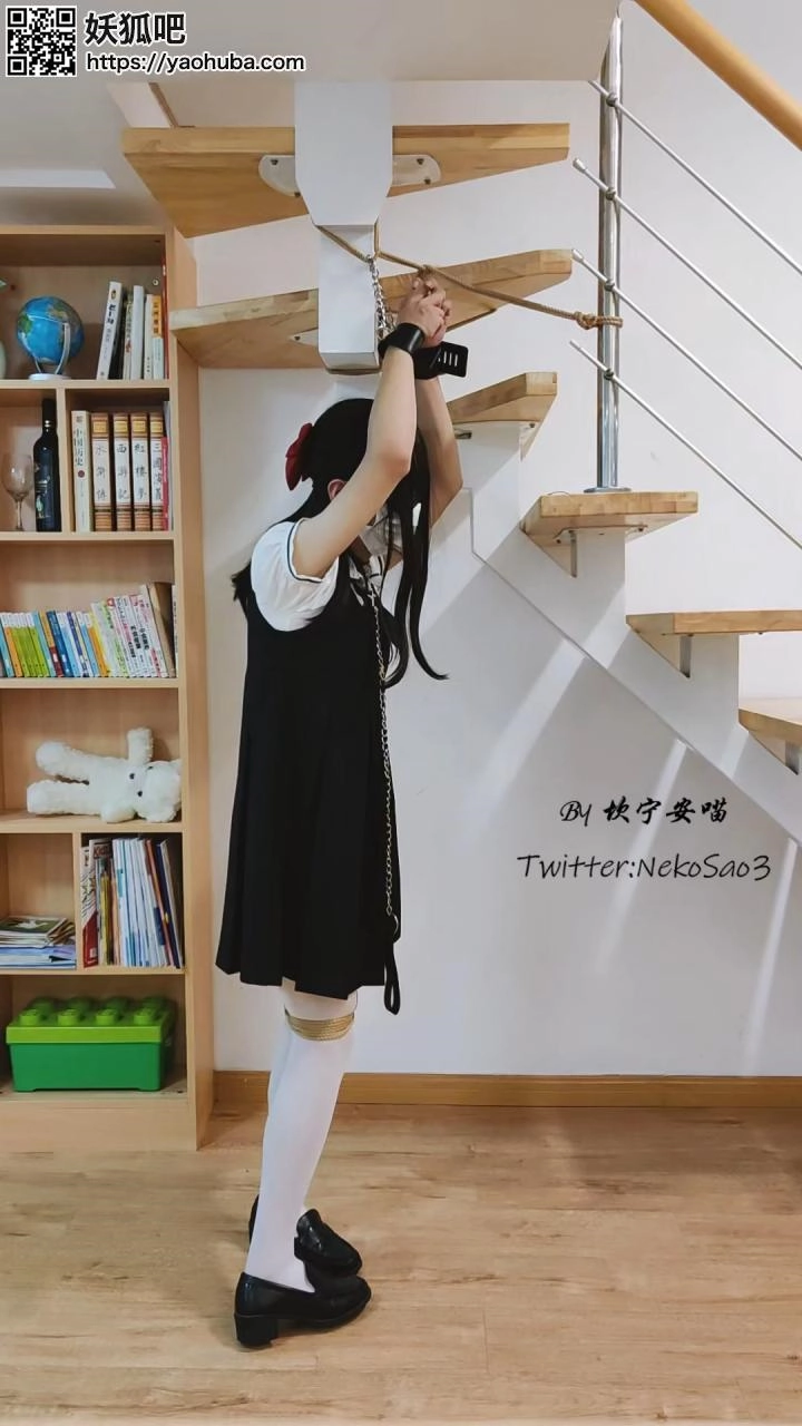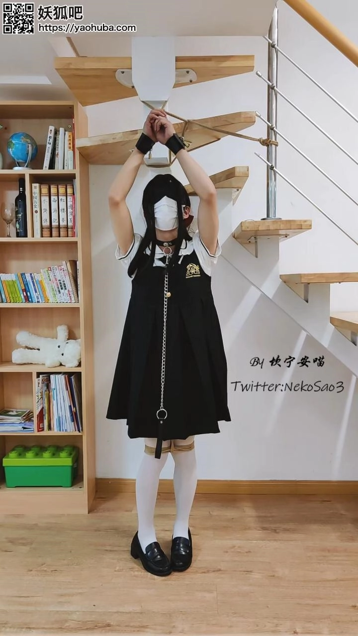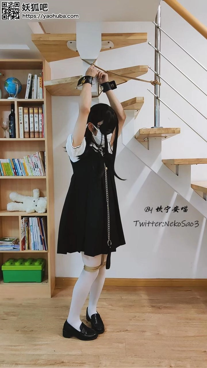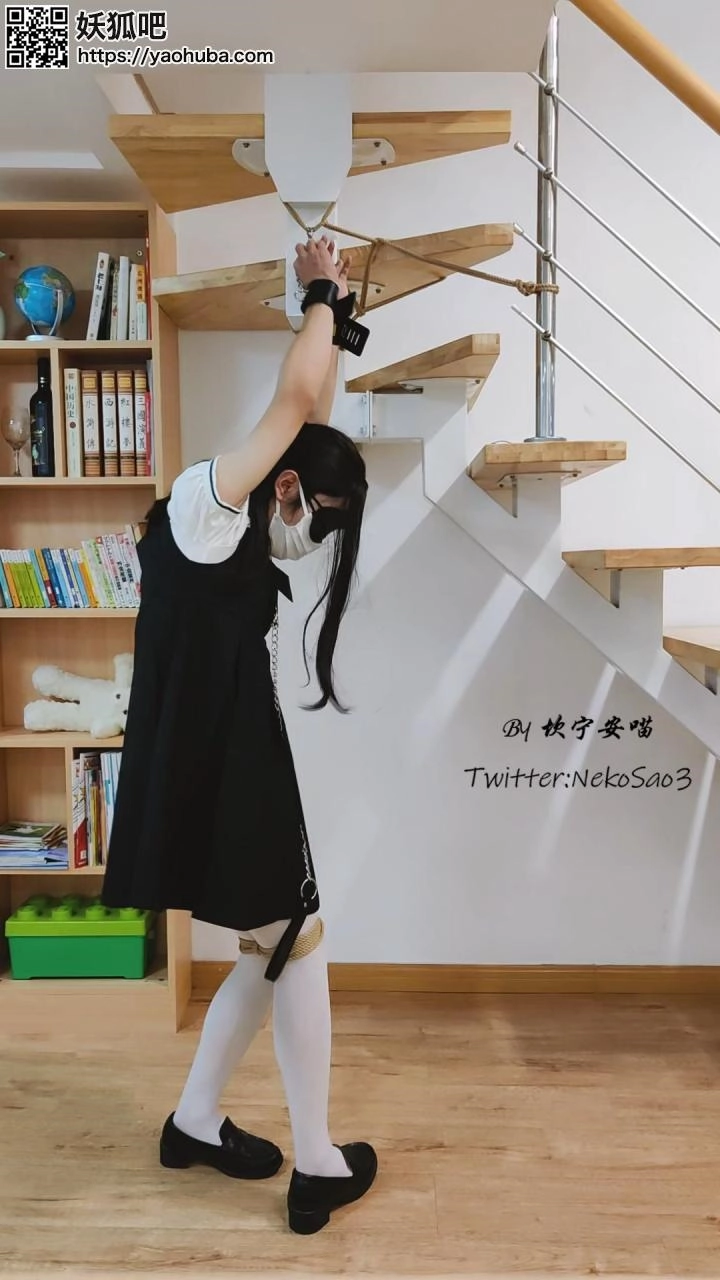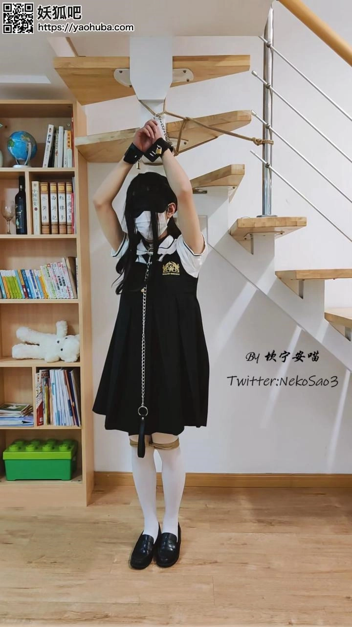 “这一天,心血来潮的坎喵决定把自己的双手吊起来,蒙眼后加上小玩具享受放置的快乐