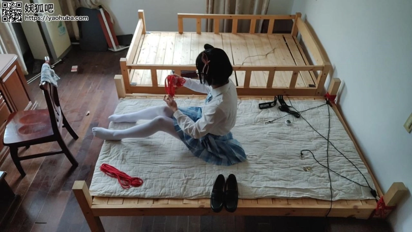 【坎喵】女装子白丝JK床上固定定时自缚
