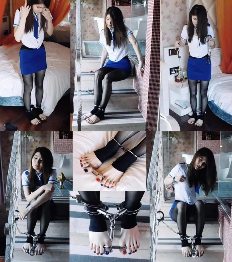 【趾间艺束】空姐晶晶酒醉镣铐自缚 手铐脚铐脚趾铐 空姐服高跟鞋黑丝