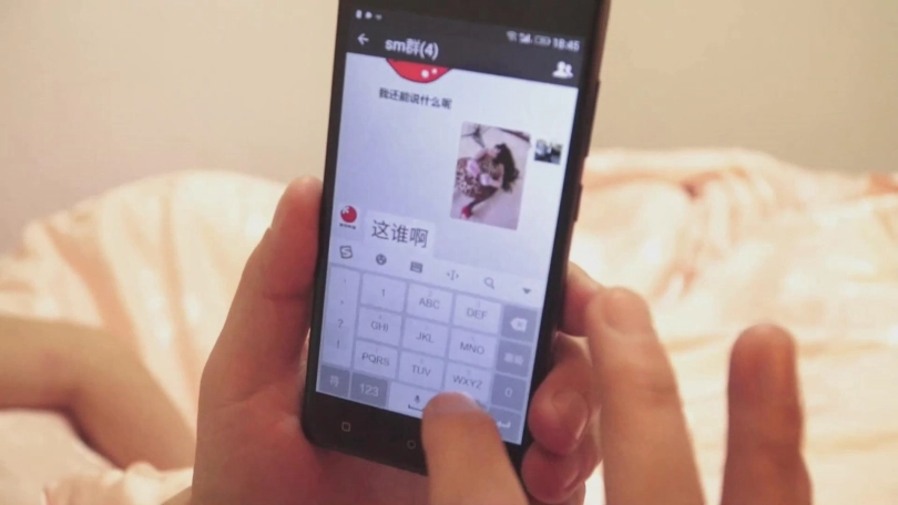 终于两人都累了,王力和小晗盖着 被子,小晗侧身已经睡去,地上散落着金属拘束工具,王力在玩着手机微信。