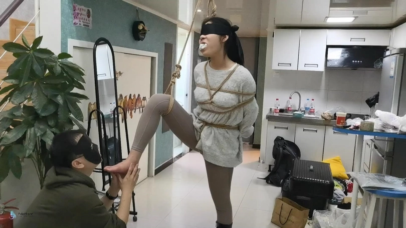 美女来到一家诊所治疗自己的X冷淡疾病,医生决定采用捆绑疗法进行治疗。美女虽然奇怪,但还是决定配合治疗。医生将女孩捆绑起来,将她的一条腿也用绳子捆绑吊起来。用棉袜塞进女孩的嘴里,蒙上她的眼睛,放置一段时间后,医生脱掉她的长靴,捧起女孩的棉袜脚亲吻并为其按摩脚部。脱掉女孩的棉袜,医生将女孩的脚放进嘴里,温暖湿润的舌头不断的在女孩的脚上游走。医生的手时不时的抚摸着女孩的敏感地方。渐渐的女孩开始有了反应,久违的[X_X]袭来,女孩情不自禁的发出轻微的呻吟,并开始享受这种治疗。。。