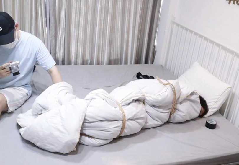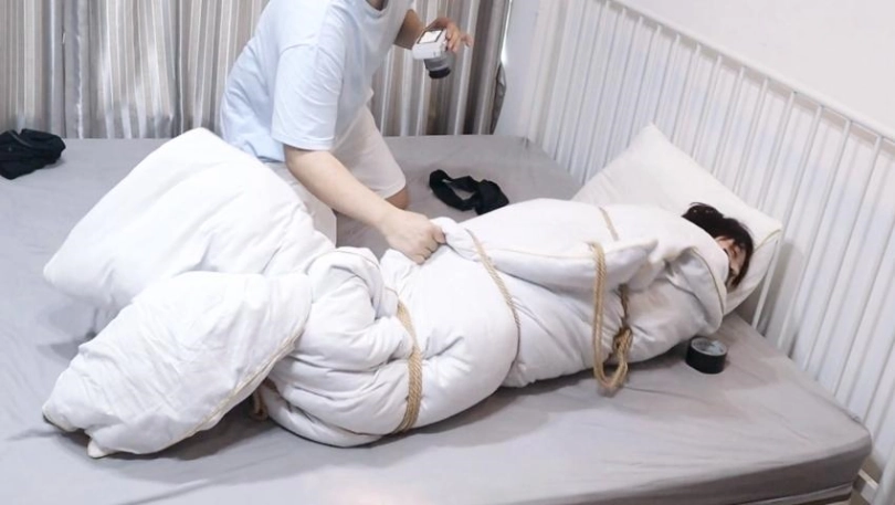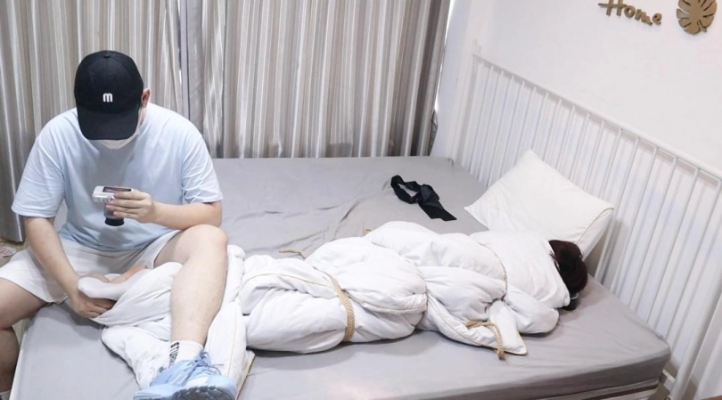 连棉被也被狠狠的绑起来,然后进行侵犯让可爱敏感短发萝莉妹妹一边痛苦的呻吟一边动起来,再脱下袜子裸足玩弄,这样感冒很快就会好的吧!