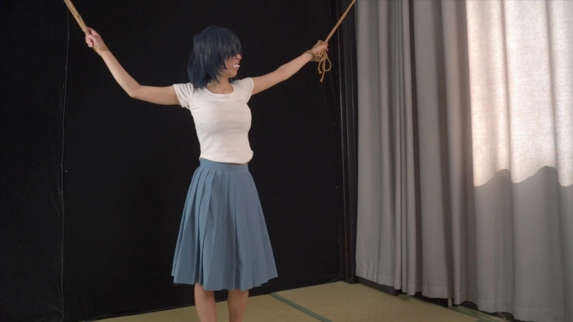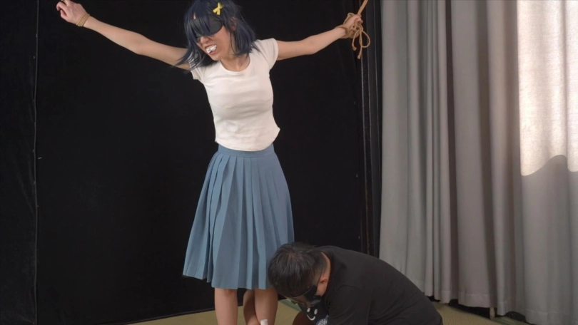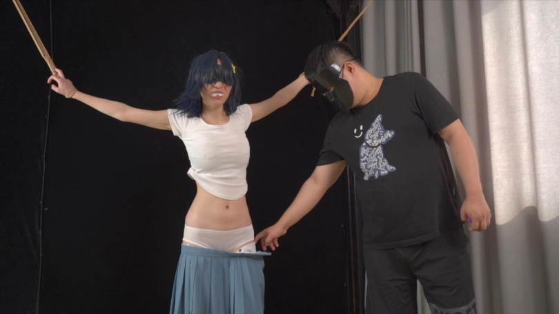 【象人】嗷嗷-蓝色长裙,白袜凉鞋,大字型捆绑TK,袜子塞嘴,td震脚底