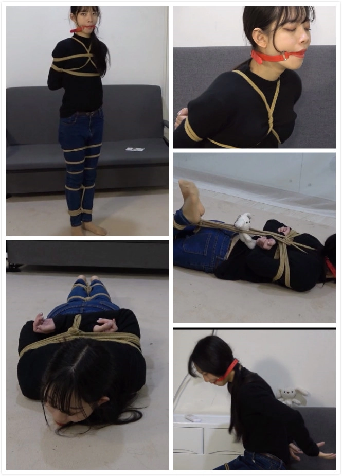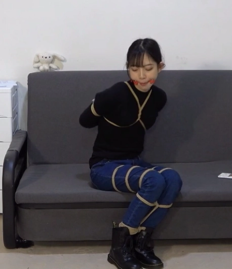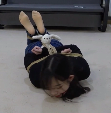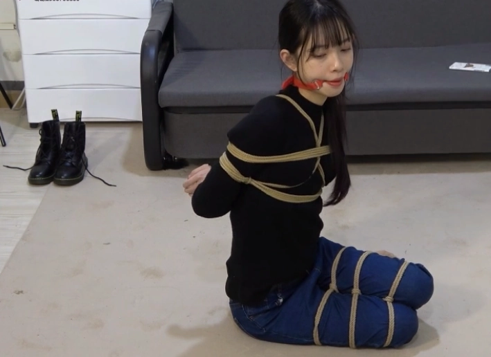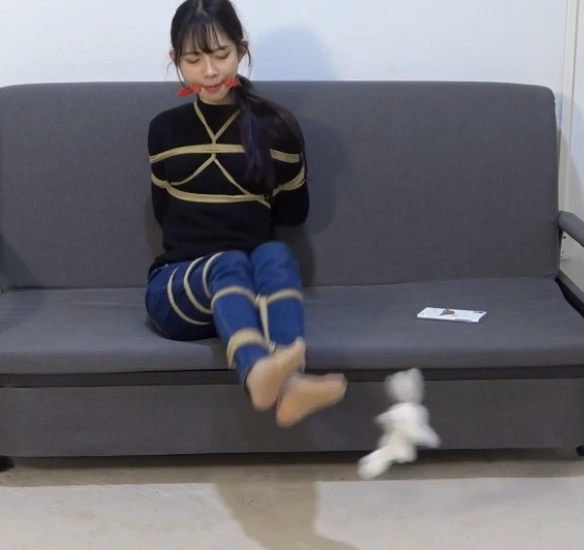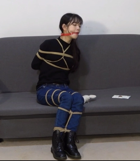 她努力挣扎着,而随着她的挣扎,捆在她身上的绳索也越来越多,最后竟是将她驷马捆缚起来。