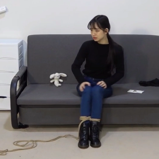 而等她有反应时,是忽然发现自己的双腿莫名其妙的并拢在了一起并且无法分开了,也就在那瞬间,凭空出现的绳索捆绑住了她的双腿,开始是脚,接着是膝盖,几秒钟内她的双腿竟是被数道绳索捆绑在了一起