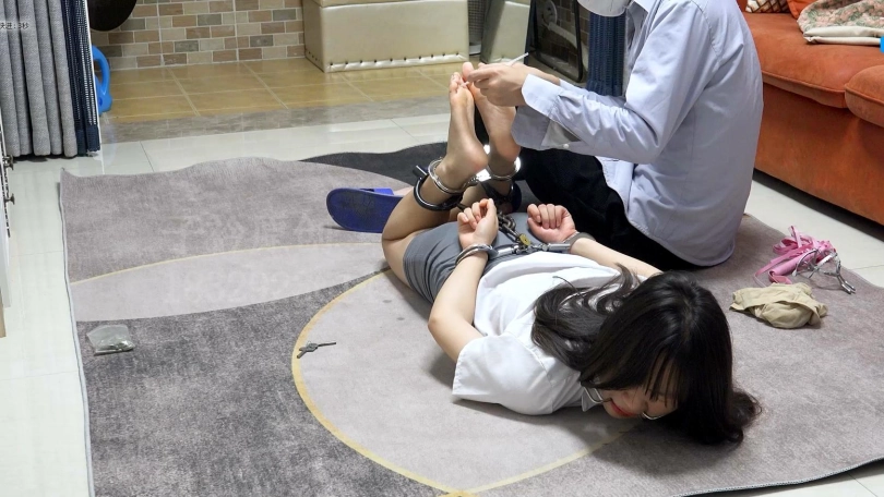 【子衿】萱萱网调实录 镣铐开口器口水 大拇指扎带 筷子夹手指脚指 镣铐驷马 这叫声太诱人了