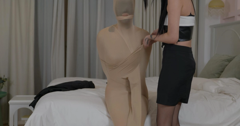 【努力的七七】丝袜全包木乃伊驷马调教男M【带过程】