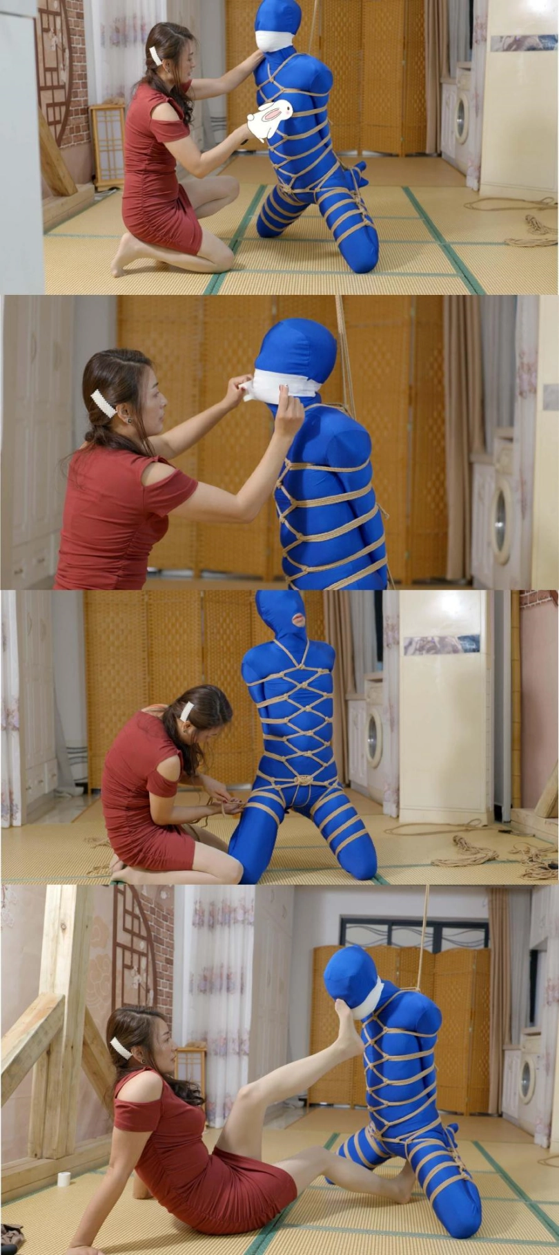 【王丽】菱形龟甲缚+折腿吊缚调教紧身衣男M带过程