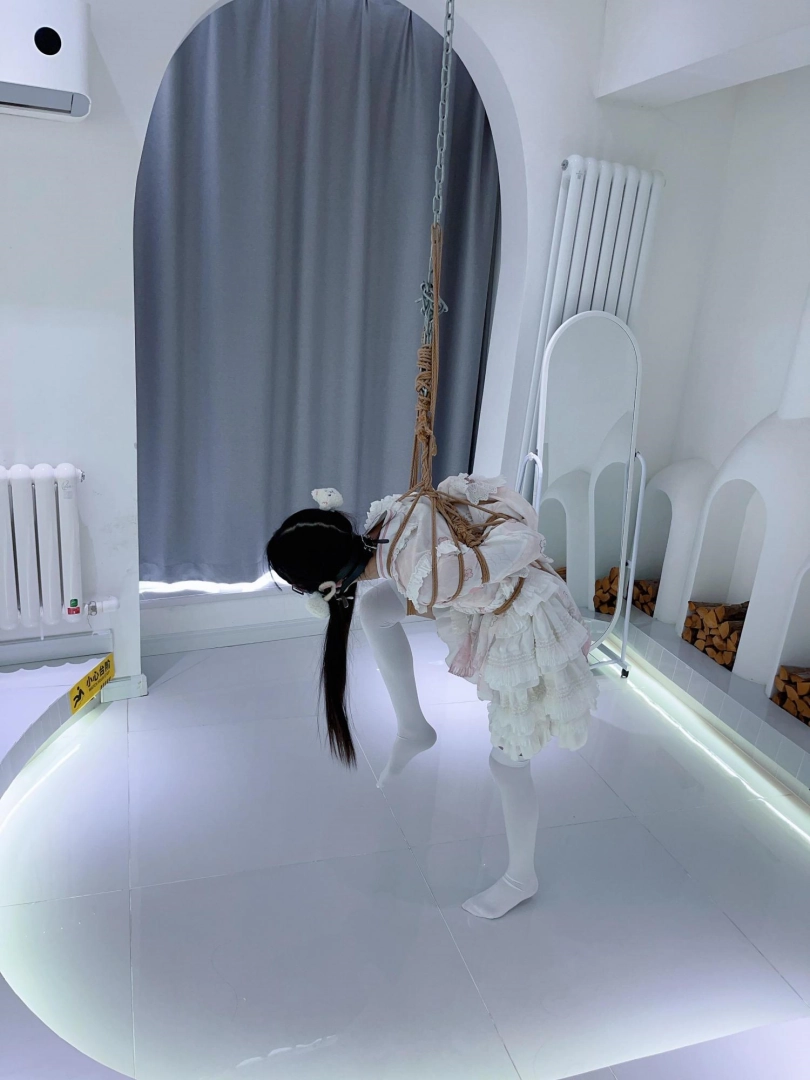 内容:把lo娘茶茶单腿吊缚,只能脚尖着地。这次单腿吊比常规单腿吊严厉一些:上胸绳承重微微左倾,配合单腿前吊很难直起腰来。然后把茶茶吊起到只有一只脚的脚尖能触碰到地面,另一只脚单腿前吊。这种情况下如果想让脚尖压力小的话,左倾承重的上半身就会把大部分体重勒到一侧大臂上,且没有任何其他可分担重量的姿势,看起来平平无奇其实手臂需要承受大量痛苦,超 虐~