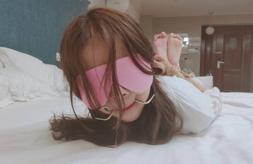 解开后因为口枷撑的太久妹子说话都说不了,嘴巴已经僵硬了。