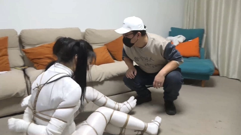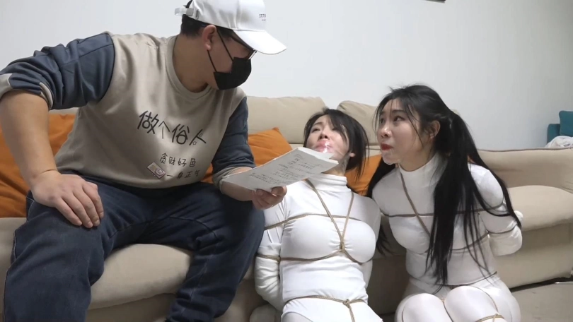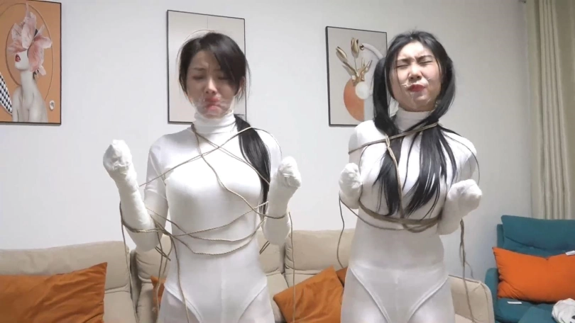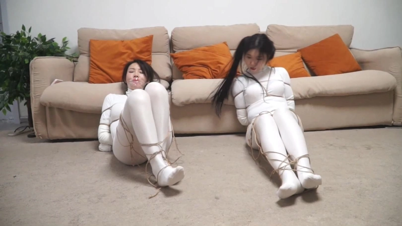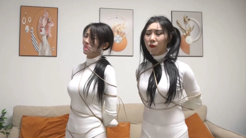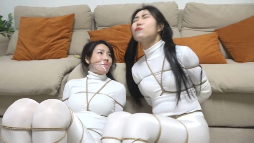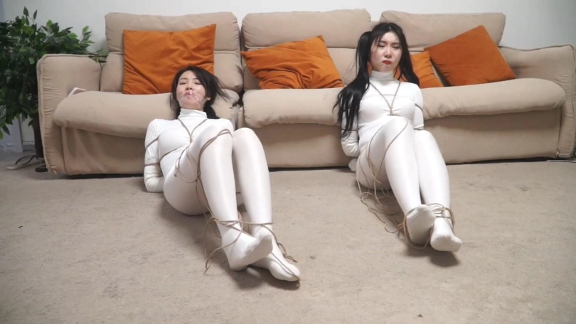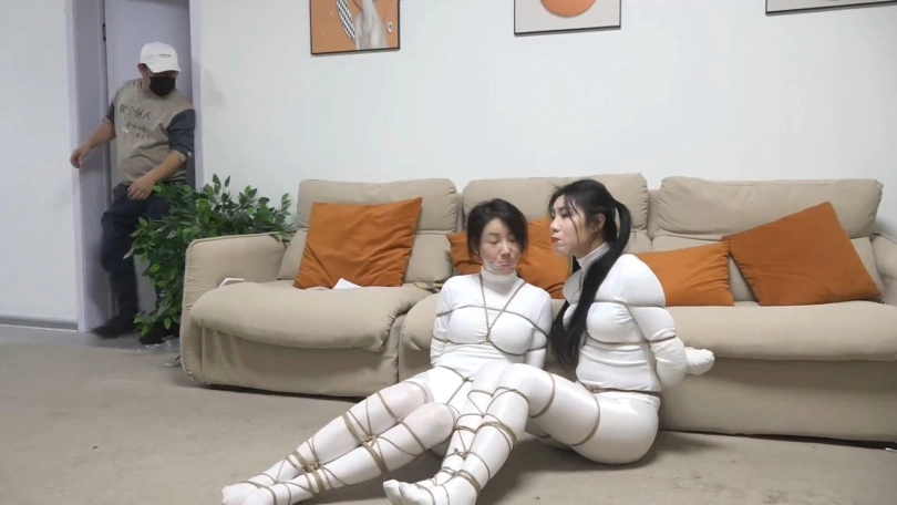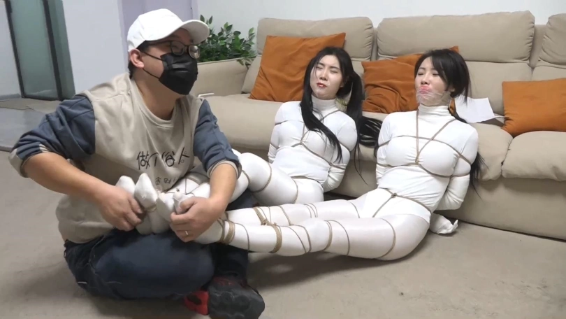 两个白丝美女上次遇到鬼控制身体,好不容易解除了控制,2个人又被飞来的绳子缠绕,一开始还没当回事,结果2个人越挣扎捆绑的越严密,没一会2个人就被完全捆绑,密集到脚掌都被绳子牢牢包裹,这时打扫卫生的人员过来,2个美女奋力求救,男人刚想解缚突然沙发上出现一个纸条说2个美女是自缚的在玩sm游戏,美女们奋力呻吟否认,最终结果如何,请不要错过~