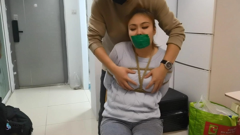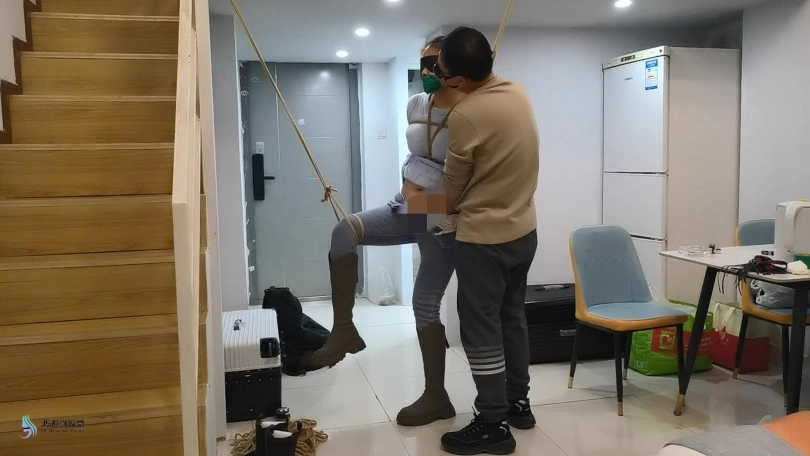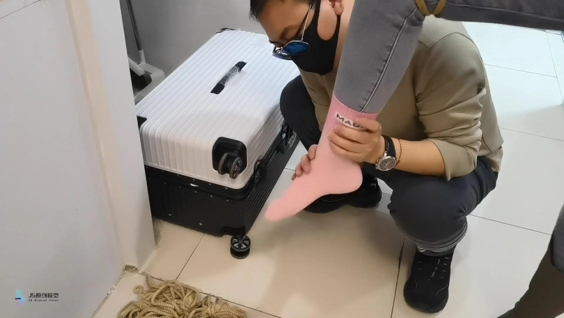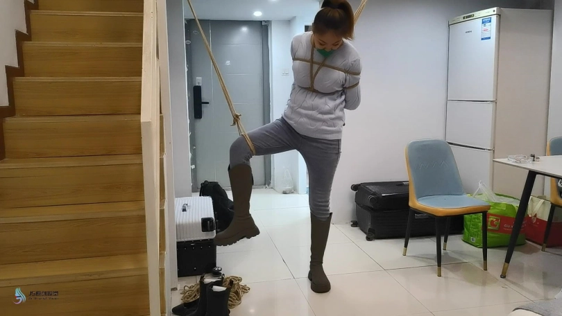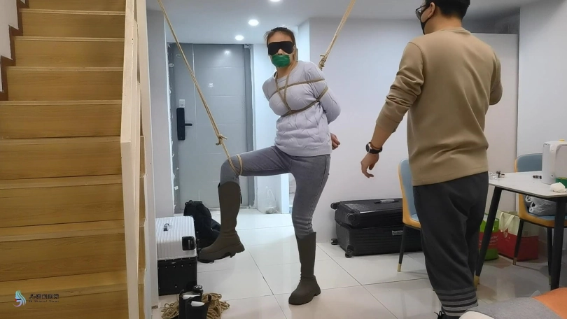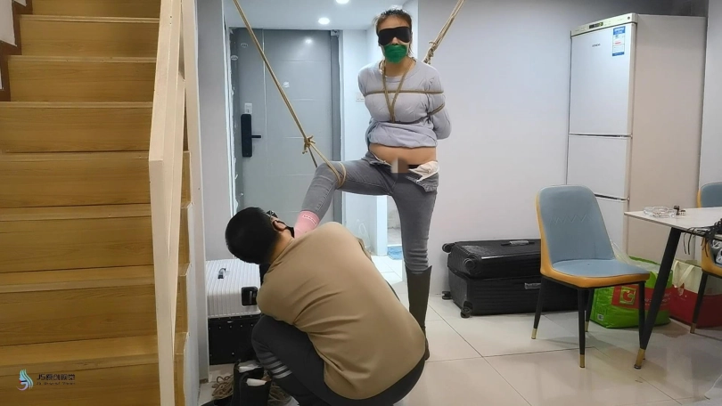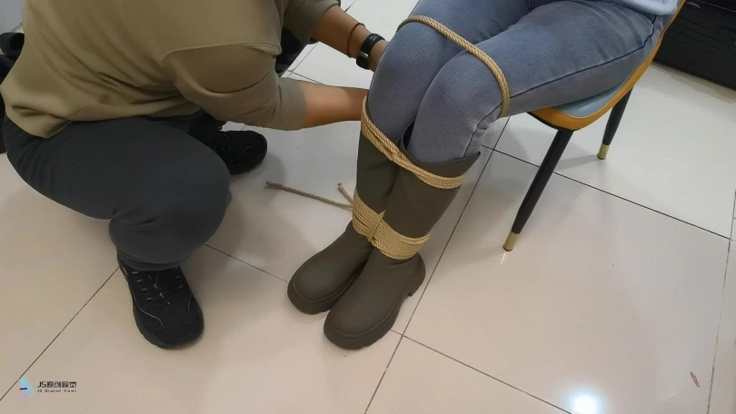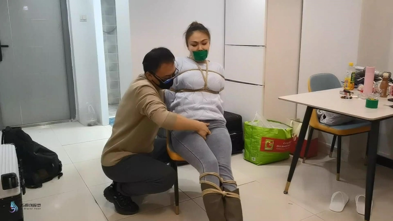 医生将女孩捆绑在椅子上,用一团布塞进女孩的嘴里,外面用胶带封堵。放置在一旁。不断的抚摸女孩的敏感部位。接下来将女孩单腿吊起来。鞭打着女孩,用TD放进裆部,不断刺激着女孩。脱掉女孩的一只靴子,玩弄她的脚心,在多重刺激下,女孩开始轻微的呻吟。。。