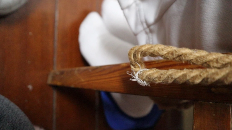 结果惨被坏人留在屋子里面捆在凳子上进行调教,我就出去玩一下就不行嘛,