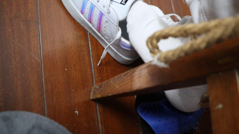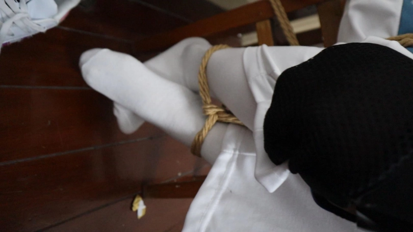 在玩具和鞭子控制下不断发出惨叫,又把本玥扔在凳子上放置,最后直接脱下本玥的鞋子开始Emmm