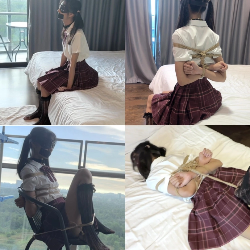 小鱼先是在房间里被日式绑起双手 然后被带到阳台把双腿固定在椅子上 最后小鱼在床上调皮惨遭主人的毒打