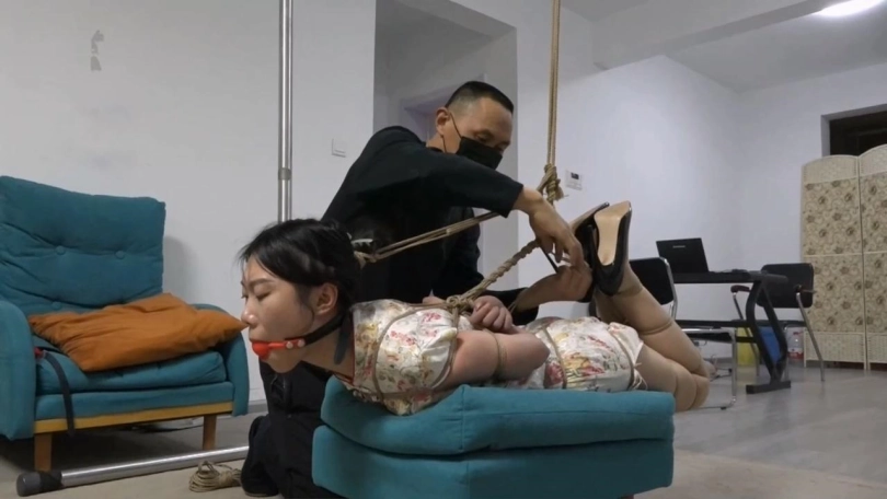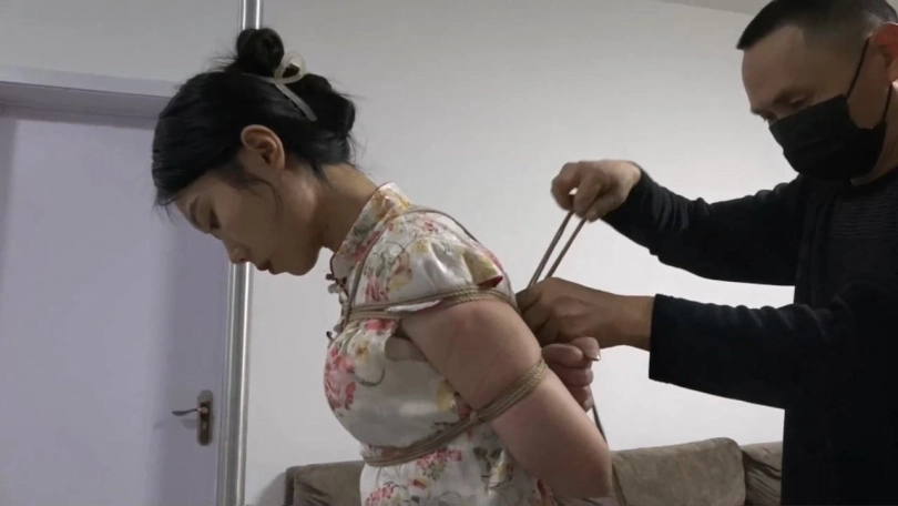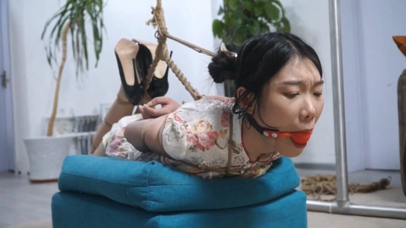 韩玉,高冷颜值配紧身小旗袍还挺适合。这次是把模特日式后高手驷马绑紧,再用绳子把驷马的绳子吊起收紧,模特全身的绳子都勒的紧紧的,一动都动不了。