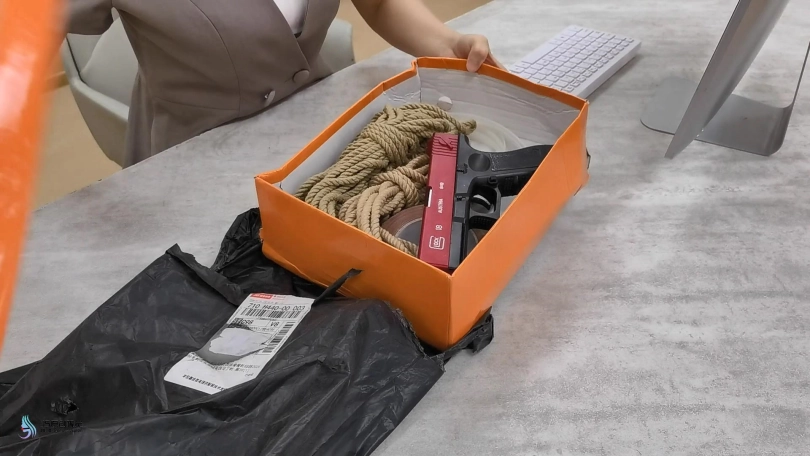 9) 那些女孩一直在挣扎。与此同时,一名男性访客从电梯里出来,听到办公室里的声音不正常,进来发现了被捆绑着的女孩们。帮她们撕下嘴上的胶带。并报了警。警方在女孩的描述下,很快将劫匪缉拿归案。