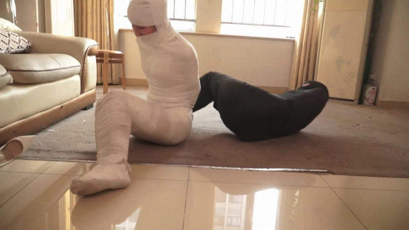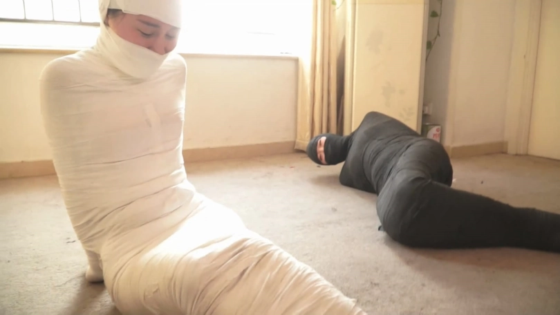 之后2个被包裹的只露眼睛的木乃伊美女的各种挣扎,互相磨蹭,累的全身香汗淋漓。