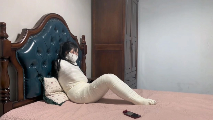 【逍遥】《过于谨慎的小偷 下》美女严密包裹木乃伊 使出浑身解数求救逃脱 每次即将逃脱都功亏一篑 美女挣扎全片卖力挣扎~