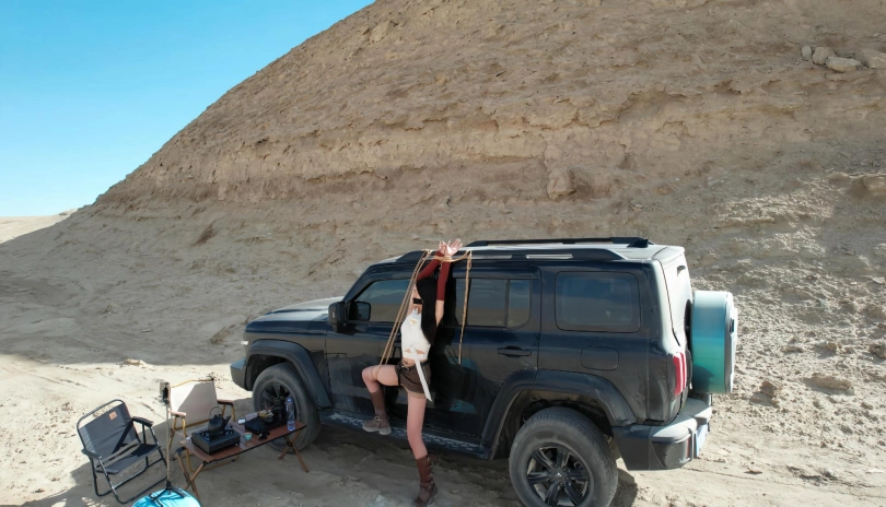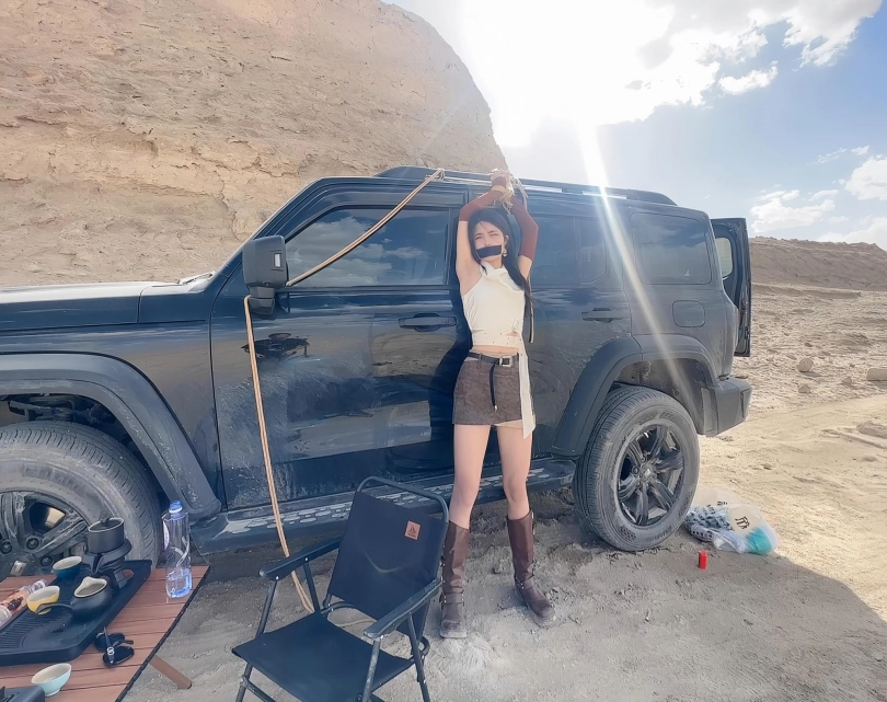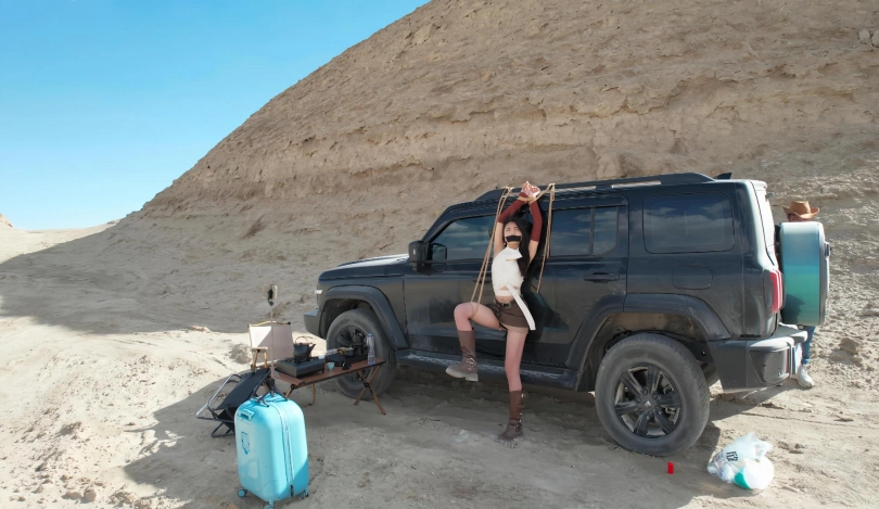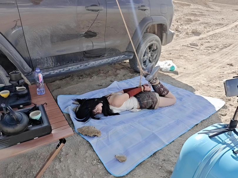 刚认识的一个大叔,戴着我去了一趟大西北,在穿越无人区沙漠的时候停下来泡壶茶然后休息一下,说好的休息一下,还没等茶泡好,就被突然绑了起来,你们是不知道这里的风沙有多大,温度有多高,感觉很快就脱水了,呼吸难受,口干舌燥,那种滋味是无法言语的,当无人机飞起来的那一刻我就知道这下是跑不了了!只有乖乖认栽。无人机的配音简直是绝绝子。