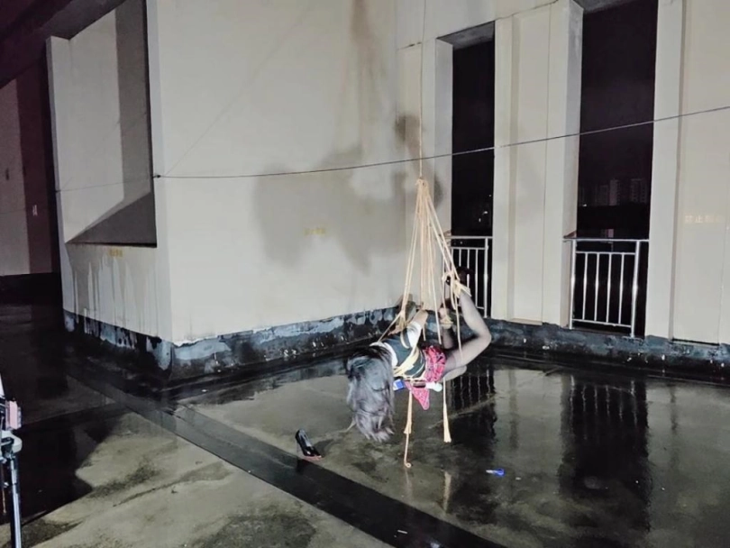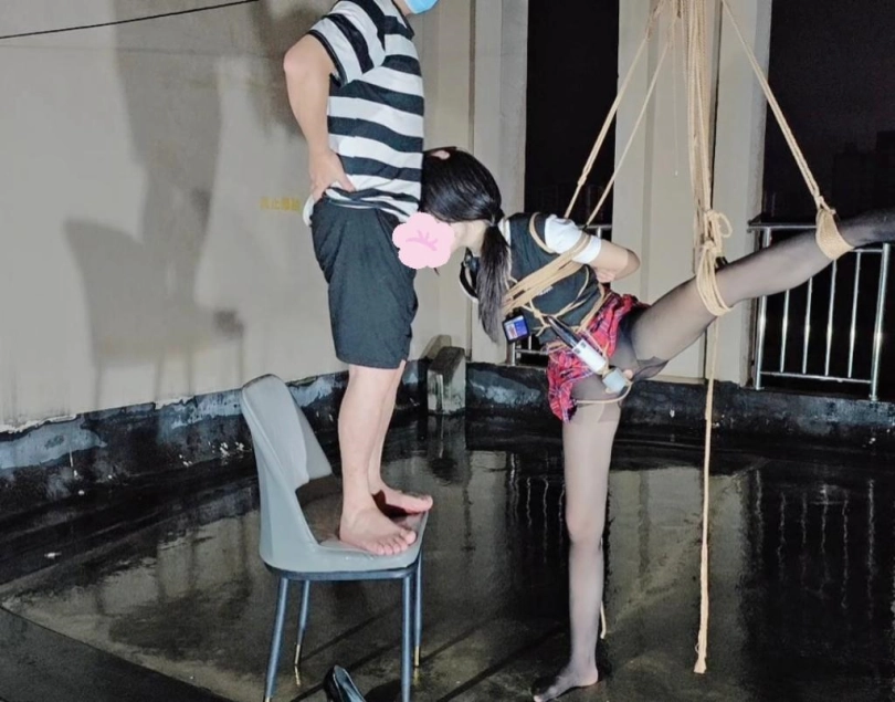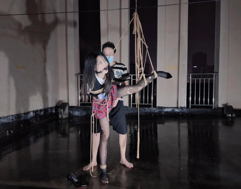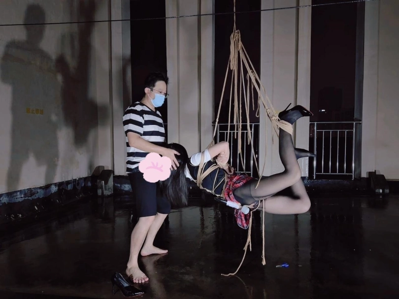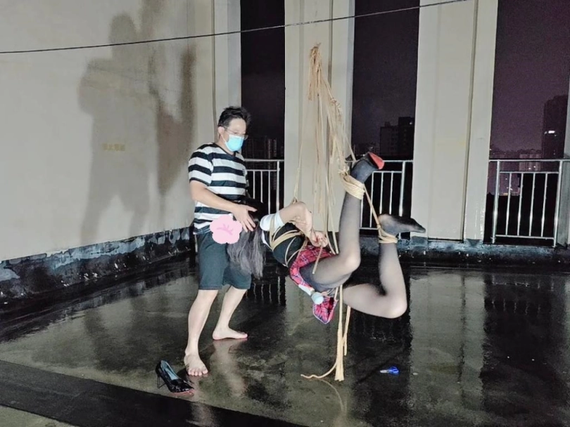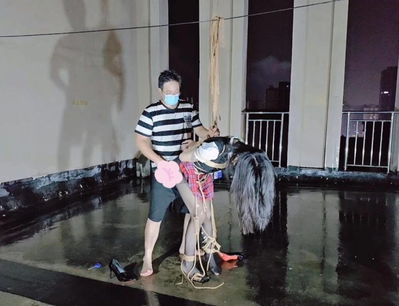 今晚的计划是天台吊缚强高,意外的是下雨了,打了两个外卖小哥的电话都不愿意送上天台,可以了他们的眼福,细高跟,单腿吊,悬空吊,空中口舌训练,其实最可怕的是单腿吊强高孤独放置,我也不知道他什么时候才会回来,反正放了好久好久好久,可以每次盼望回来的希望最终都是绝望的开始!!完事过后还是继续放置,淋雨到天亮。