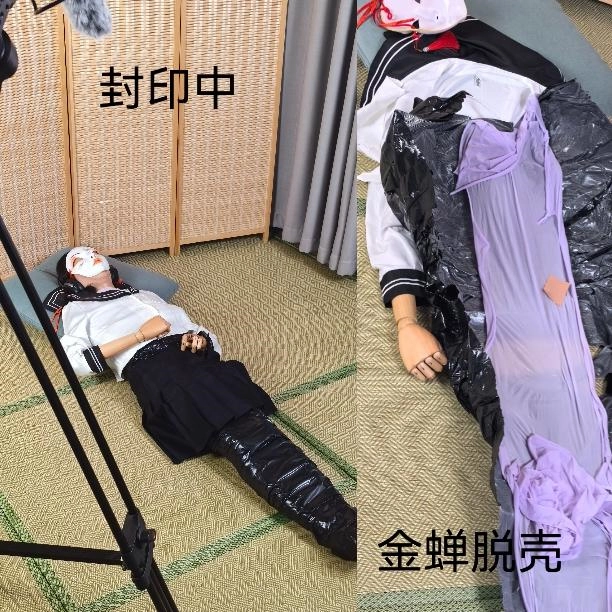 【渎竺】【嗷嗷】我的机器人女友,黑色胶带木乃伊伪装拘束!(有脱茧过程!剪胶带声音真的很爽!)