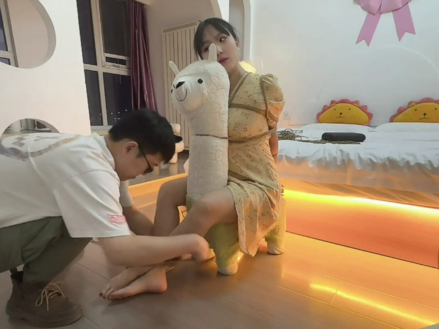 【缚仙】可爱的诺诺绑在可爱的羊驼座椅上聊天互动 白嫩裸足+挠痒