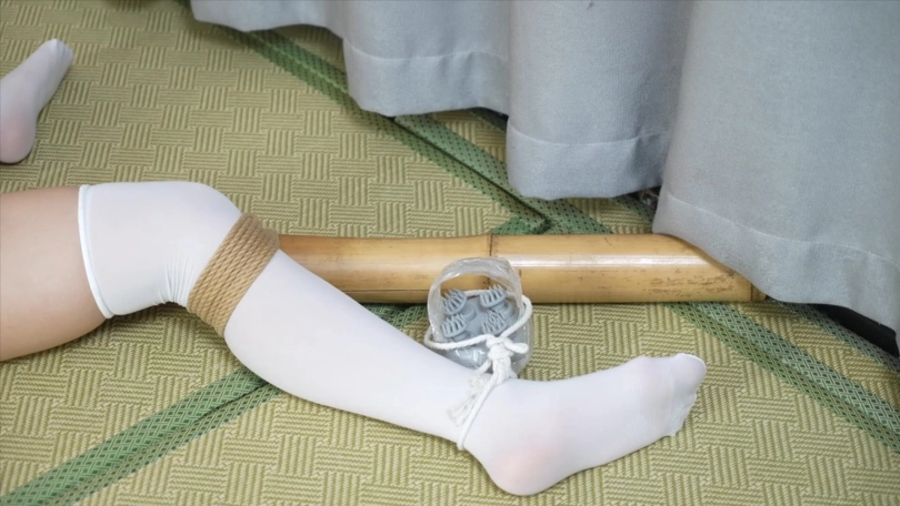 【象人】小0-白色泳衣+大腿袜,一字捆绑按摩机器tk。