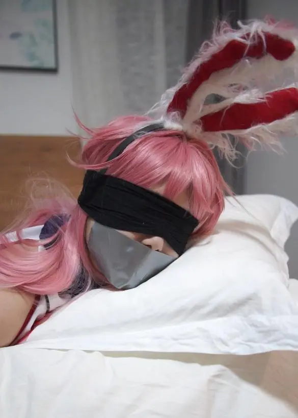 闭目养神的八重樱丝毫没有意识到危险正在逼近,毫无防备的她被坏人从背后袭击,坏人把八重樱私下穿了一周的黑丝袜塞进了她的嘴里,再用丝袜蒙住了她的眼睛,勒住了她的嘴巴,后来再用胶带封嘴,把八重樱驷马捆绑在床上,还会有什么样的调教等待着她呢