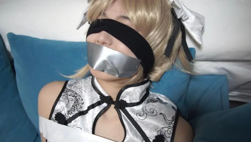 【Chrisgag】旗袍穹妹被入室捆绑 丝袜堵嘴后胶带封嘴