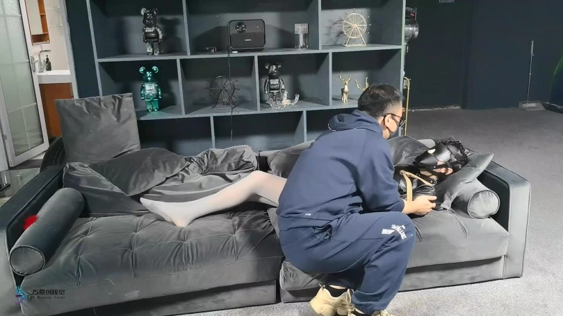 脱掉女老板的靴子,露出了一双穿着灰色连裤袜的美足,对方贪婪的亲吻,挠脚底,玩弄着女老板的美足。将她驷马捆绑起来,在不断的折磨下,女老板最终被迫答应签下了协议,将自己的公司低价转让了出去。