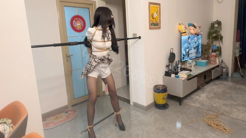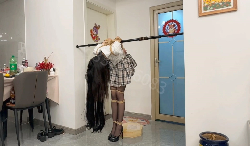 jk,黑丝,超高跟,极限欧式后手紧缚,固定好之后开始调教,超长罚站放置强高,强制口舌呕吐,后入至失禁,过程有点煎熬,喷一地都是,最后手里拿着那个气球是羞辱感的点睛之笔