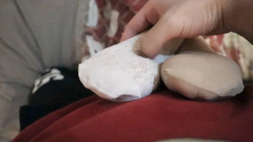 慢慢的慢慢脱下红色的小lo鞋露出小lo袜子