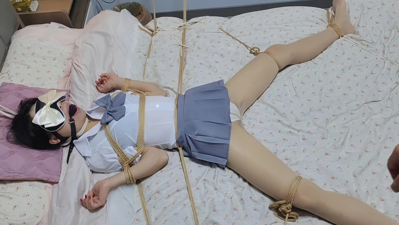 这次带来一种完全无法动弹的床上固定绑法,从脖子开始,头部,然后手折叠,然后腰部固定,再然后大腿拉升固定,最后是脚的固定,这样一套操作下来是真正的无法做到剧烈挣扎的行为了,只能呜呜呜的咆哮和喘息,当然再加上筋膜枪的威力,丫丫很久都没有达到这样的效果了。。。