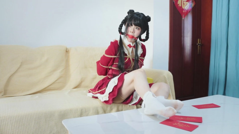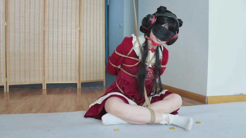 4号红包:姿势升级:梦尘被绑成特殊姿势,并在挣扎过程中用脚寻找地上的三枚硬币,只要用脚碰到,然后通过呜呜声来回报即可算1次成功。