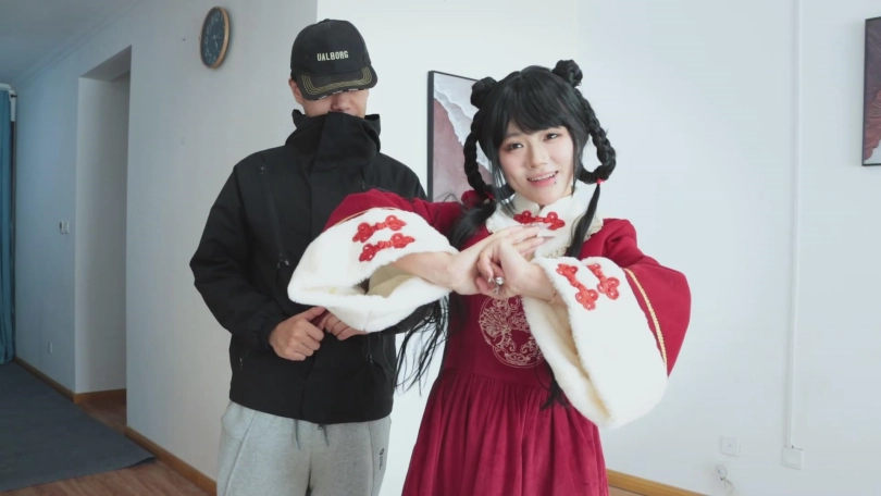 首先梦尘穿着喜庆的中式洛丽塔与大家打招呼:各位金主们大家好啊,欢迎大家收看2025年元宵节特集,我是主持人梦尘,当然作为模特我的艺名也是梦尘。