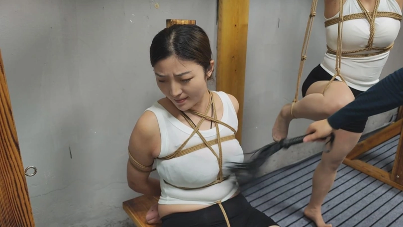 四女在逃跑的过程被歹徒堵住,被迫脱下作战服,重新绑了起来。经受一系列拷问。