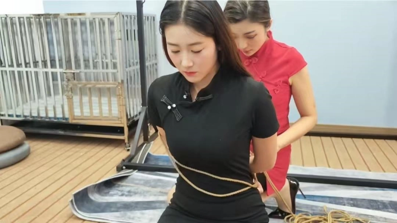 茜茜和佳佳一见如故,谈论个不停,最后竟然拿起绳子玩了起来,鞭打,遛狗,关笼子样样在行,训狗也是有一套,真实绝了,简直就是无师自通