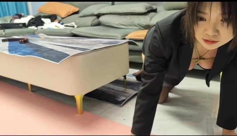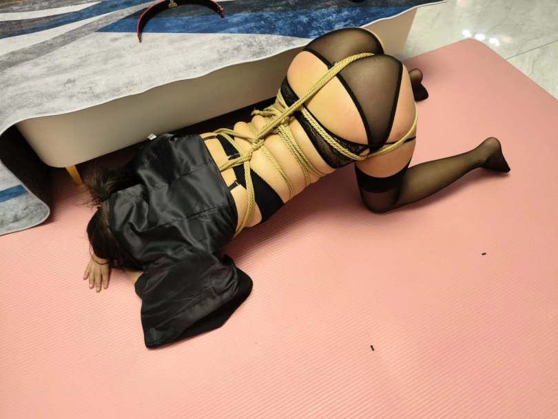 老板的秘书小文自己在家换[X_X]带丝袜,穿了一套黑色内衣,又把胸部和下面进行了紧紧的捆绑,自己对着镜子照了非常满意,外面穿上西服套装,偷偷的躲在办公室里面在电脑上看捆绑图片,被老板进来看个正着,既然敢诱惑老板,那只有接受老板一系列的调教了。黑丝内捆,非常漂亮,里面有原味袜子堵嘴,舔脚精彩瞬间。