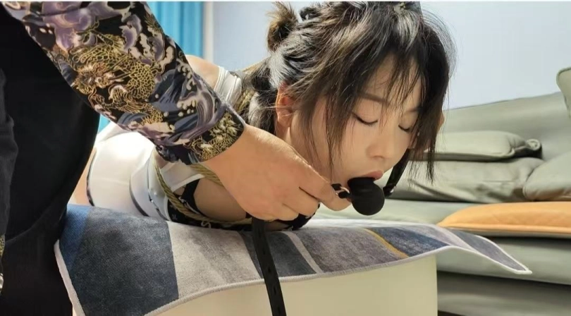 茶几上摆满了各种口塞,老板让小文自己选着带,随后又用绳子进行了驷马捆绑,放置到桌子上,拿上两种Y具口塞进行了深喉训练,小文深喉非常棒,坚持了很长时间,最后鼻涕眼泪都哗哗的流了出来